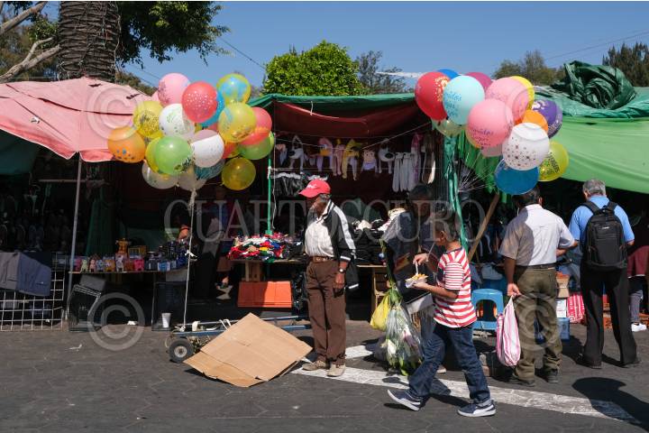 Comerciantes de la alcaldía Xochimilco vendieron globos ecológicos, hechos de latex, con motivo de la celebración del Día de Reyes.