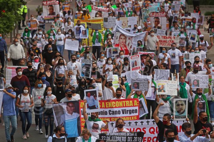 Vista general de la “Primer Caminata” que realizaron familiares de personas desparecidas en Jalisco, para exigir a las autoridades soluciones y justicia para remediar este mal que aqueja a México.
