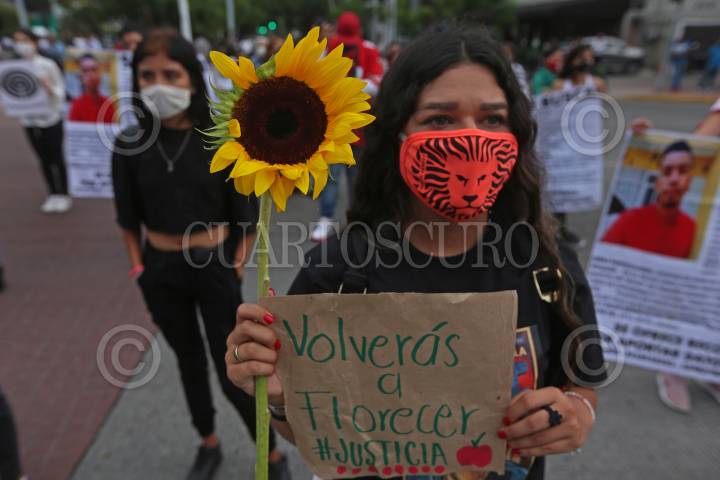 Una joven muestra su pancarta en la “Primer Caminata” que realizaron familiares de personas desparecidas en Jalisco, para exigir a las autoridades soluciones y justicia para remediar este mal que aqueja a México.