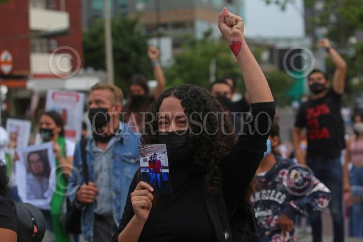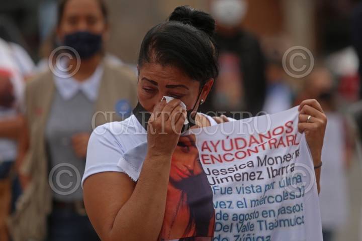 Una madre de familia limpia sus lagrimas durante la “Primer Caminata” que realizaron familiares de personas desparecidas en Jalisco, para exigir a las autoridades soluciones y justicia para remediar este mal que aqueja a México.
