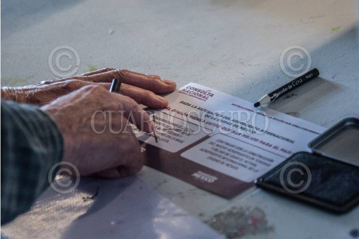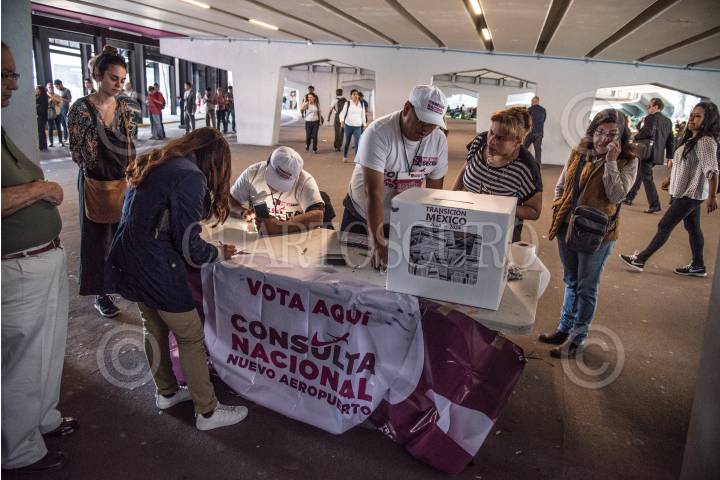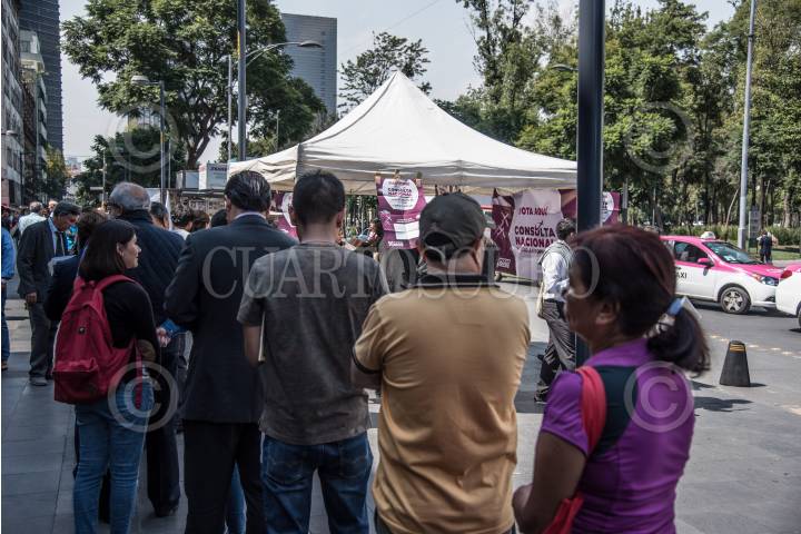 CIUDAD DE MÉXICO, 25OCTUBRE2018.- Personas comenzaron a emitir su voto en la Consulta Nacional sobre el nuevo Aeropuerto Internacional de México (NAIM). En la imagen, la mesa de consulta ubicada en avenida Juárez. FOTO: MARIO JASSO /CUARTOSCURO.COM