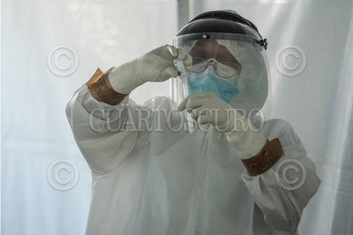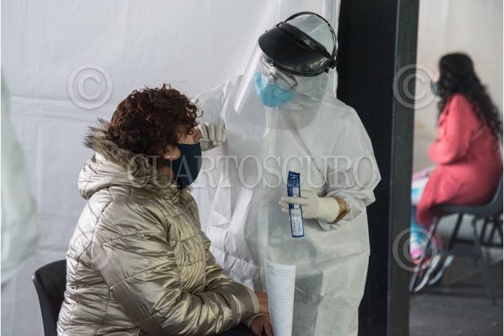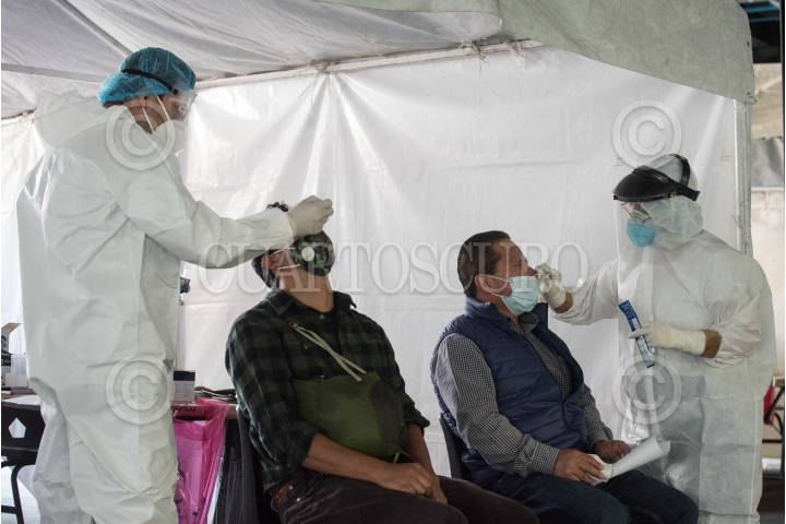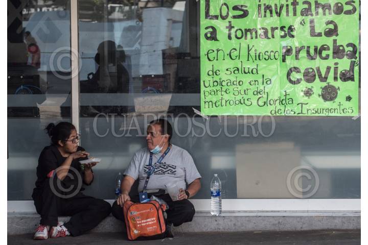 Vecinos de la colonia Roma asisten a realizarse la prueba rápida de detección de Covid-19 en el "macro kiosko" instalado en la glorieta del metro Insurgentes.