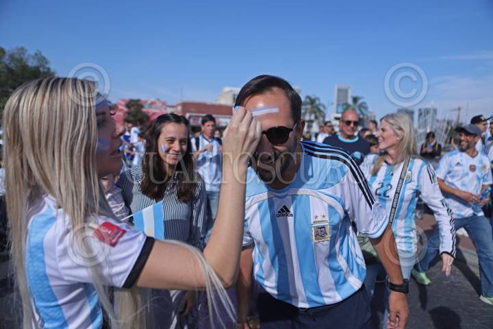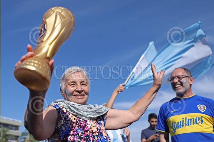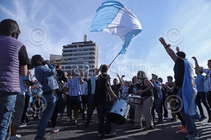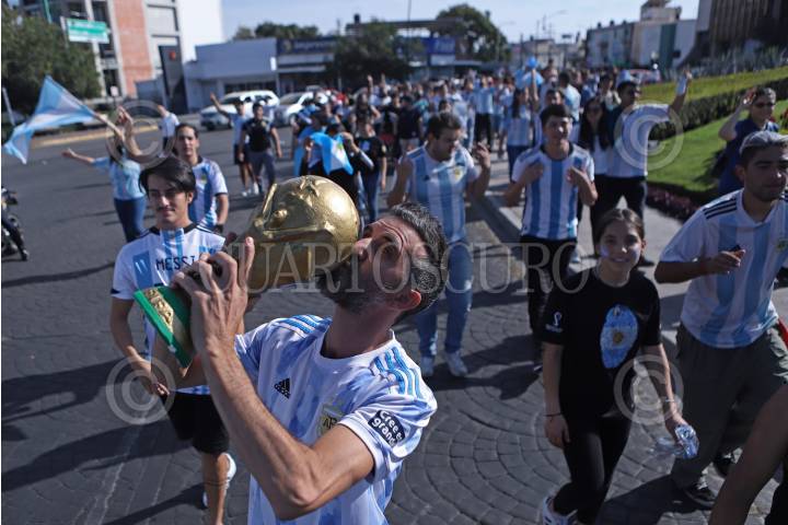 Aficionados Argentinos, festejan el campeonato mundial que logro su selección en Qatar 2022.