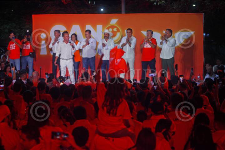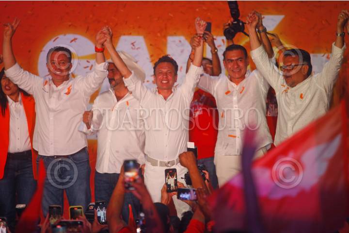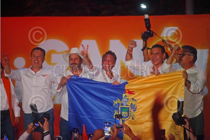 GUADALAJARA, JALISCO. 03JUNIO2024.- Pablo Lemus, candidato a la gubernatura del estado por el partido Movimiento Ciudadano (MC), festejo la victoria en las inmediaciones de la Glorieta Minerva, esto al finalizar la jornada electoral que se llevo a cabo en el país para elegir Presidente, Senadores, Diputados, Diputados Locales, Gobernadores y Alcaldes. FOTO FERNANDO CARRANZA GARCIA / CUARTOSCURO.COM