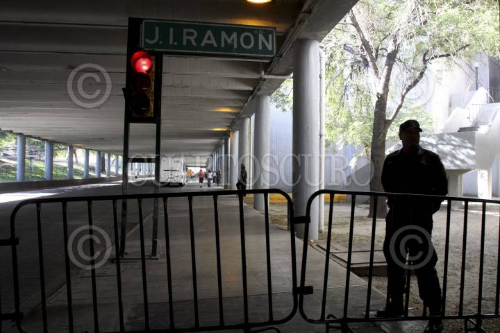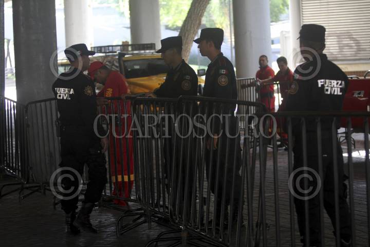 MONTERREY, NUEVO LEÓN, 15OCTUBRE2014.- En medio de un fuerte dispositivo de seguridad que abarcó los alrededores del Congreso del Estado y varias cuadras aledañas y donde se restringió el acceso al peatón en toda la zona para evitar protestas, el gobernador del estado Rodrigo Medina de la Cruz entregó el 5to. informe de gobierno. FOTO: GABRIELA PÉREZ MONTIEL /CUARTOSCURO.COM