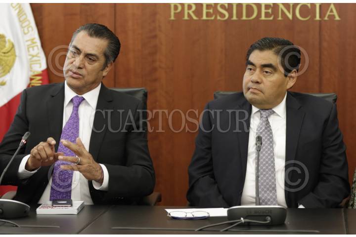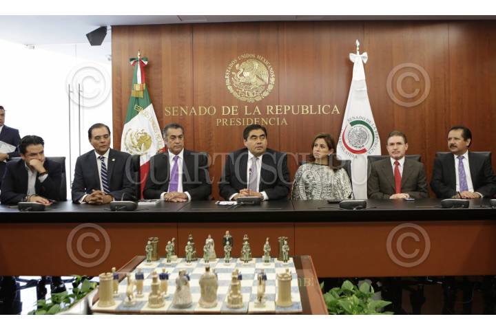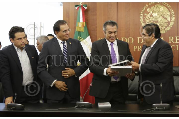 MÉXICO, D.F., 21AGOSTO2015.- Miguel Barbosa Huerta, presidente de la Mesa Directiva del Senado, y Jaime Rodríguez Calderón, gobernador electo de Nuevo León, ofrecieron una conferencia de prensa luego de una reunión en la que también estuvieron presentes los vicepresidentes de la Mesa Directiva, José Rosas Aispuro y Luis Sánchez; y los senadores Martha Tagle, Luis Humberto Fernández, Zoé Robledo y Benjamín Robles. FOTO: CUARTOSCURO.COM