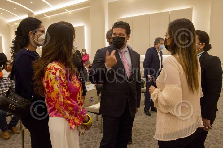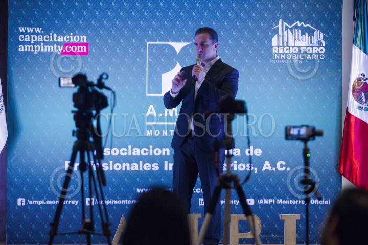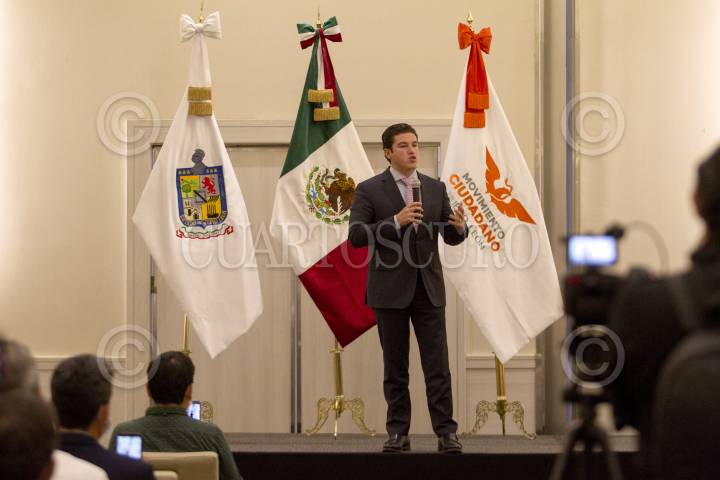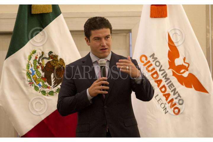 Samuel García, candidato a la gubernatura de Nuevo León, acudió a un encuentro con empresarios del sector inmobiliario del estado. García aclaró en rueda de prensa, que es el candidato puntero a un mes de la elección y tanto los partidos tradicionales o el Presidente no están implicados en su campaña.