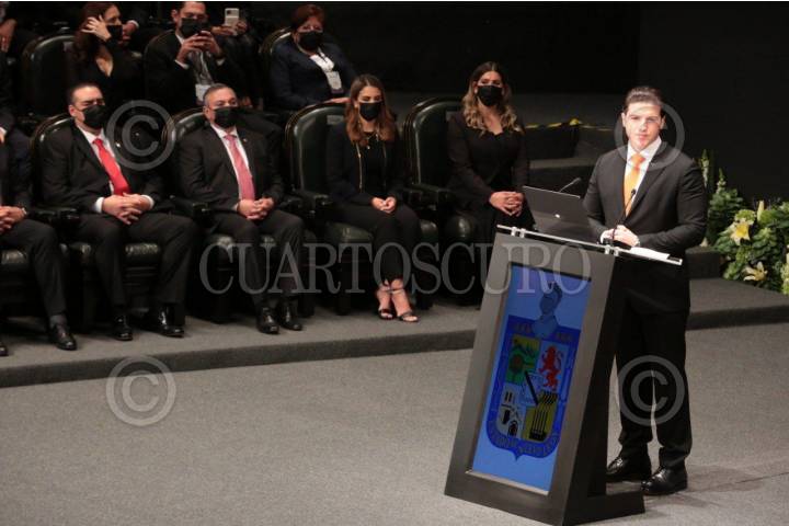 MONTERREY, NUEVO LEÓN, 03OCTUBRE2021.- Samuel García Sepúlveda toma protesta como gobernador de Nuevo León acompañado de autoridades federales y estatales en el Teatro de la CIudad. FOTO: CUARTOSCURO.COM