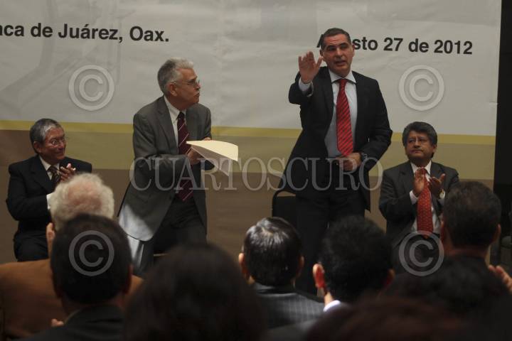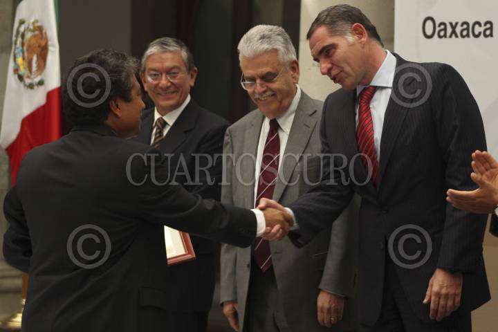 OAXACA, OAXACA, 27AGOSTO2012. - Gabino Cué, ejecutivo Local, encabezó la entrega del Premio Estatal de Ciencia y Tecnología 2012, dicha actividad se celebró en Palacio de Gobierno. Seis fueron los investigadores locales galardonados con estos reconocimientos, dos con 50 mil pesos y cuatro más con 25 mil pesos cada uno. FOTO: ARTURO PÉREZ ALFONSO /CUARTOSCURO.COM