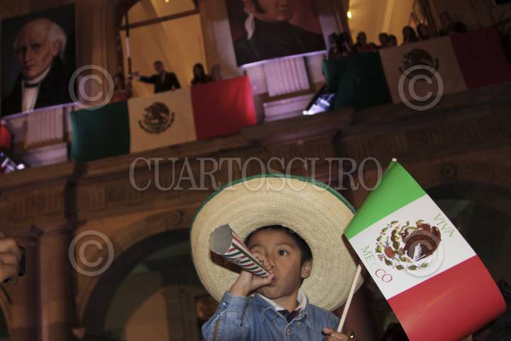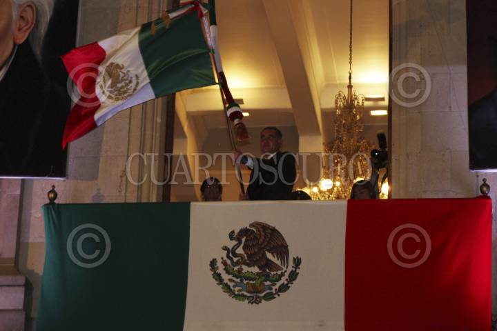 OAXACA, OAXACA, 15SEPTIEMBRE2012.- Gabino Cué, gobernador del estado encabezó la ceremonia del Grito de Dolores en el Palacio de Gobierno, sede del Poder Ejecutivo en la entidad. El mandatario estuvo acompañado de su esposa, Mané Sánchez Cámara y su hija Mané Cué Sánchez. FOTO: ARTURO PÉREZ ALFONSO /CUARTOSCURO.COM