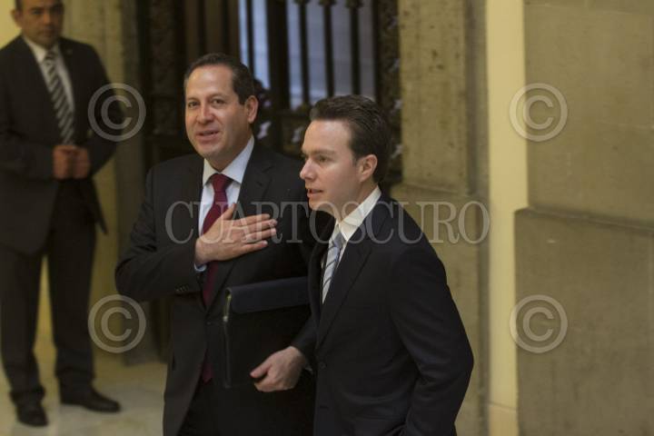 CIUDAD DE MÉXICO, 20DICIEMBRE2016.- Eruviel Ávila, gobernador del Estado de México, y Manuel Velasco Coello, gobernador de Chiapas, acudieron a la 16 Sesión del Consejo Nacional de Seguridad Pública, en el salón Tesoreria del Palacio Nacional. FOTO: MOISÉS PABLO /CUARTOSCURO.COM