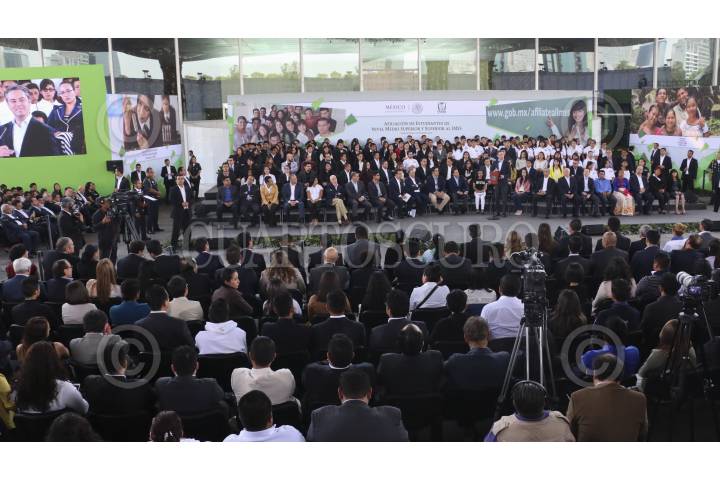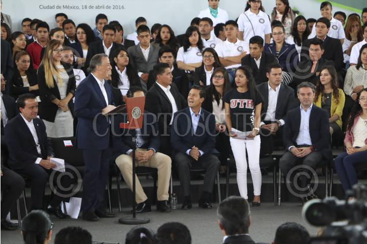 CIUDAD DE MÉXICO, 18ABRIL2016.- Enrique Peña Nieto, presidente de México, acompañado del Secretario de Educación Aurelio Nuño, José Narro, titular de Salud, José Antonio Meade, titular de SEDESOL, Mikel Arriola, titular del IMSS, José Reyes Baeza, titular del ISSSTE, Miguel Angel Mancera, Jefe de gobierno de la Ciudad de México y Gabino Cue, gobernador de Oaxaca, durante la presentación oficial de la afiliación de estudiantes de nivel medio superior y superior al IMSS. FOTO: SAÚL LÓPEZ /CUARTOSCURO.COM