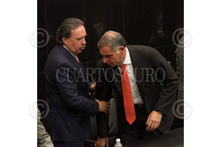 CIUDAD DE MÉXICO, 26ABRIL2016.- Emilio Gamboa, coordinador de los senadores del PRI; y Gabino Cué, gobernador de Oaxaca, durante la declaratoria de la Consulta Democrática Nacional y firma el Convenio de Colaboración entre el Senado y la Asociación Nacional de Universidades e Instituciones de Educación Superior (ANUIES). FOTO: MOISÉS PABLO /CUARTOSCURO.COM