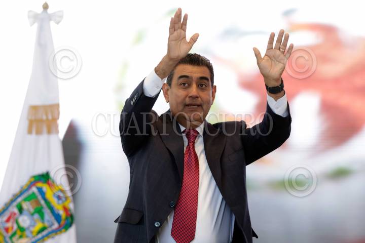 PUEBLA, PUEBLA, 22NOVIEMBRE2024.- Sergio Salomón Céspedes Peregrina, gobernador de Puebla, rindió su segundo informe de actividades en la Plaza de La Victoria. FORO: MIREYA NOVO/ CUARTOSCURO.COM