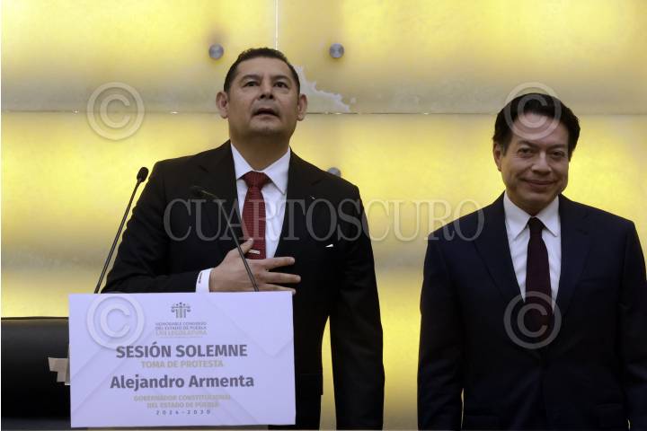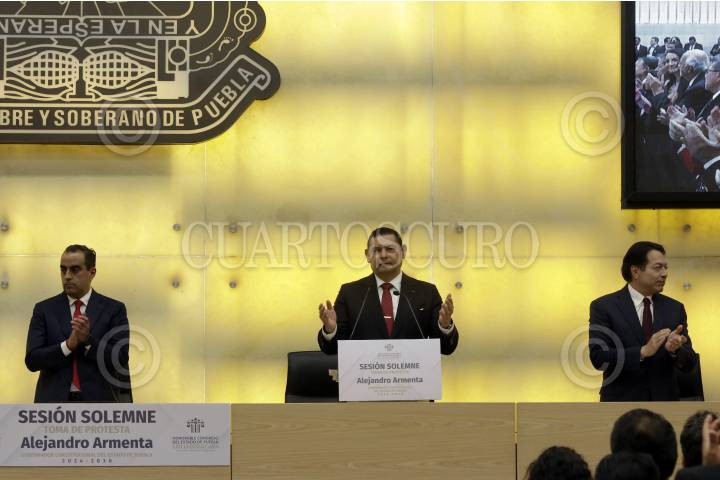 PUEBLA, PUEBLA, 14DICIEMBRE2024.- Alejandro Armenta rindió protesta como Gobernador Constitucional del Estado de Puebla, en la nueva sede del Congreso del Estado. FOTO: MIREYA NOVO/ CUARTOSCURO.COM