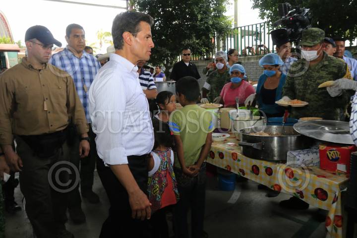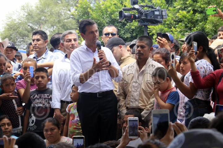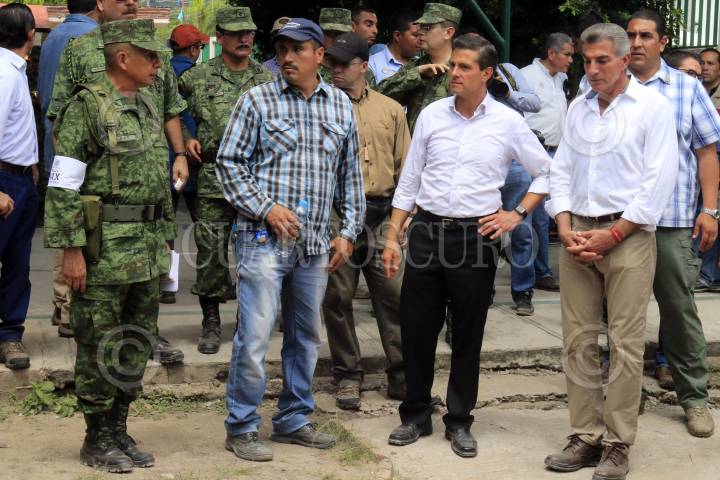 CHIAUTLA DE TAPIA PUEBLA 21SEPTIEMBRE2017.- El presidente de la república; Enrique Peña Nieto acompañado por el gobernador de Puebla; Antonio Gali Fayad, realizó una gira en la comunidad de San Juan Pilcaya perteneciente al municipio de Chiautla de Tapia en Puebla en donde supervisó albergues y evaluó los daños ocasionados por el sismo de 7.1 grados registrado en el centro del país el pasado 19 de septiembre FOTO: HILDA RÍOS/ CUARTOSCURO.COM