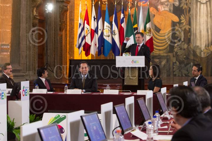 CIUDAD DE MÉXICO, 23FEBRERO2016.- Virgilio Andrade, secretario de la Función Pública; Eruviel Ávila, gobernador del Estado de México; Aurelio Nuño, secretario de Educación Pública; Ximena Puente de la Mora, titular del INAI, y Francisco Domínguez Servien, gobernador de Querétaro, durante la presentación del portal de transparencia del programa "Escuelas al CIEN", que se realizó en la SEP. FOTO: MOISÉS PABLO /CUARTOSCURO.COM