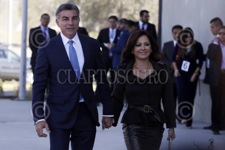 SAN JOSÉ CHIAPA, PUEBLA; 15ENERO2017.- Antonio Gali, gobernador electo de Puebla y su esposa Dinorah López de Gali, a su llegada al VI Informe del gobernador de Puebla Rafael Moreno Valle; llevado a cabo en el Centro de Convenciones de la ciudad modelo en San José Chiapa donde se estableció la empresa automotriz Audi. FOTO: HILDA RÍOS/ CUARTOSCURO.COM