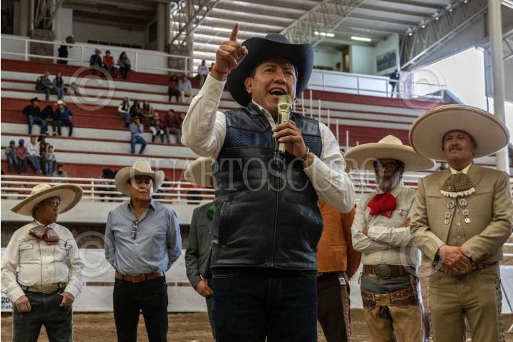 David Monreal Ávila, gobernador electo en Zacatecas, puso en marcha el torneo de charreada "Amor con amor se paga", en el Monumental Lienzo Charro Antonio Aguilar.