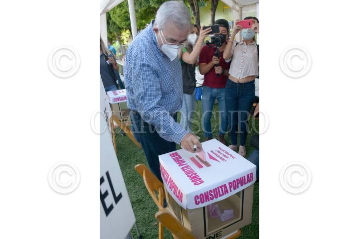 Rubén Rocha Moya, gobernador elector de Sinaloa, emitió su voto en la Consulta Popular 2021, que busca enjuiciar a los Ex Presidentes de México.