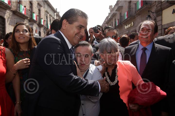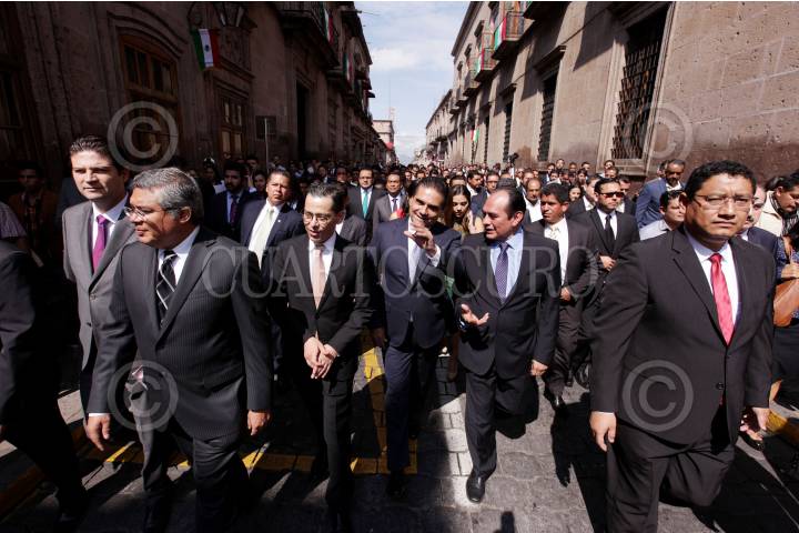 MORELIA, MICHOACÁN, 18SEPTIEMBRE2015.- El Tribunal Electoral del Estado de Michoacán, declaró la legalidad y validez de la elección de Gobernador, en dónde resultó triunfador Silvano Aureoles Conejo, en Sesión Solemne en Palacio Clavijero, Aureoles Conejo recibió la constancia correspondiente que lo acredita como Mandatario Estatal para el periodo 2015-2021. FOTO: ALAN ORTEGA /CUARTOSCURO.COM