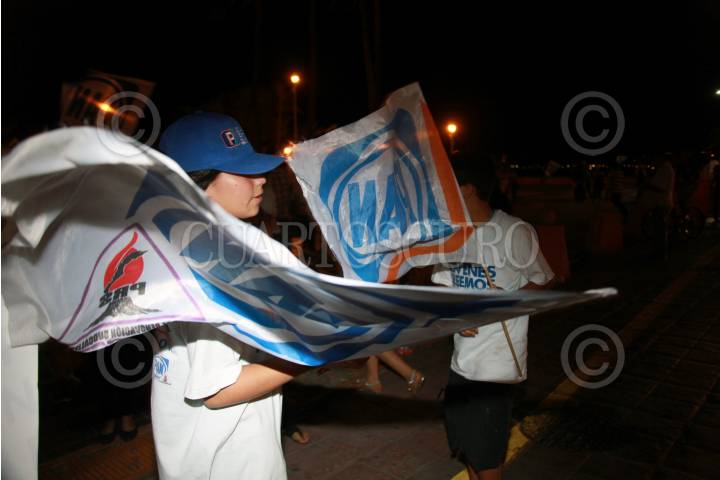 LA PAZ, BAJA CALIFORNIA SUR, 07JUNIO2015.- A pesar de los fuertes vientos que se dejaron sentir en la capital del estado de Baja California Sur por el paso del huracán “Blanca”, cientos de simpatizantes salieron a las calles de La Paz, a celebrar el virtual triunfo del candidato a la gubernatura por el Partido Acción Nacional, Carlos Mendoza Davis. FOTO: GABRIEL LARIOS /CUARTOSCURO.COM