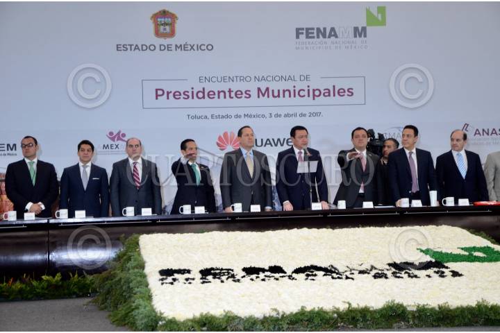 TOLUCA, ESTADO DE MÉXICO, 03ABRIL2017.- Miguel Ángel Osorio Chong, Secretario de Gobernación y Eruviel Ávila Villegas, gobernador del Estado de México encabezaron el Encuentro Nacional de Presidentes Municipales en el Centro de Convenciones y Exposiciones de Toluca, y tomaron protesta a Manuel Acosta Gutiérrez luego de como el nuevo presidente de la FENAMM. FOTO: ARTEMIO GUERRA BAZ / CUARTOSCURO.COM