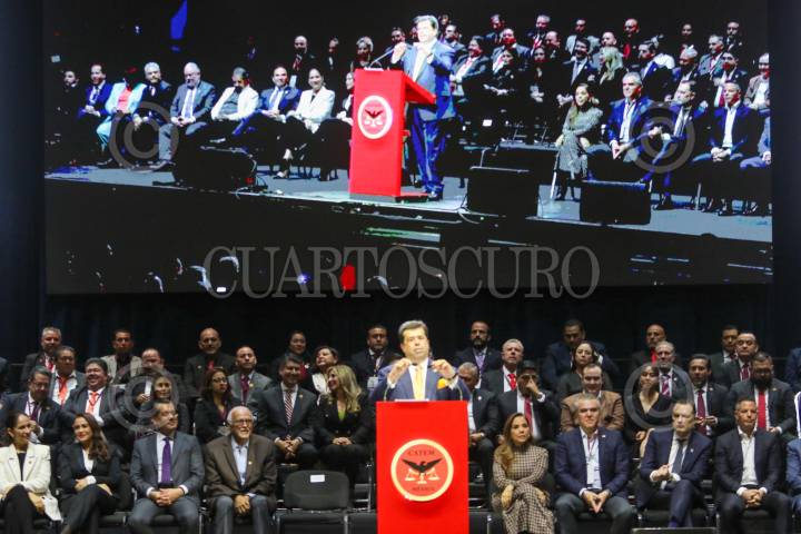 CIUDAD DE MÉXICO. 25NOVIEMBRE2024.- Pedro Haces, diputado y dirigentes de Catem, rindió protesta al frente de este sindicato, en una ceremonia en el Metropolitan, en el Centro de la Ciudad. Mara Lezama, libia Denisse Brito, Tere Jiménez, Alejandro Murat, Mauricio Kuri, Francisco Cervantes, entre otros acudieron al evento de toma de posesión. FOTO: VICTORIA VALTIERRA/CUARTOSCURO.COM