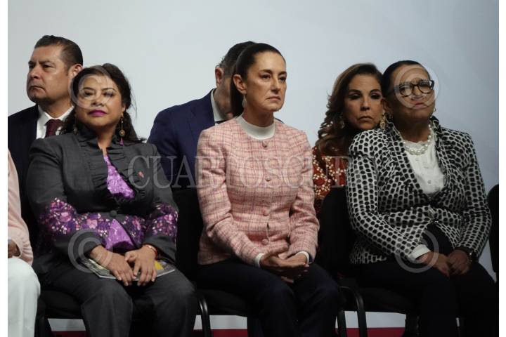 CIUDAD DE MÉXICO, 16ENERO2025.- Clara Brugada, jefa de gobierno de la Ciudad de México, Claudia Sheinbaum, presidenta de México, y Rosa Icela Rodríguez, secretaria de Gobernación, durante el Encuentro Nacional Municipal con gobernadores, gobernadoras, así como presidentas y presidentes municipales. En el evento se realizó la firma del Convenio para la creación del componente indígena del Fondo de Aportaciones para la Infraestructura social (FAIS) FOTO: GALO CAÑAS/CUARTOSCURO.COM
