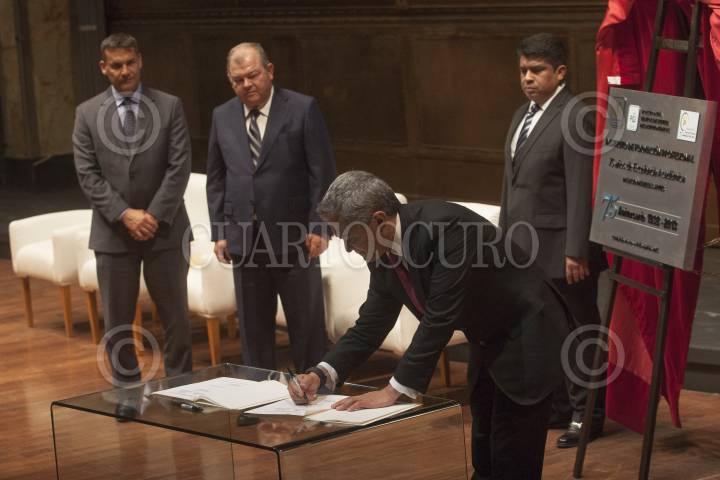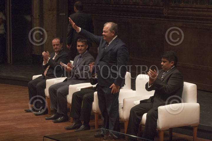 MÉXICO, D.F., 14ABRIL2013.-Durante la Celebración del 75 aniversario del Instituto de Formación Profesional de la Procuraduría General de Justicia del Distrito Federal (PGJDF), se suscribió un convenio con la Organización de los Estados Americanos (OEA) en temas de formación y profesionalización del personal sustantivo de la dependencia local. Al acto acudieron el procurador capitalino Rodolfo Ríos Garza, Dante Negro, director del Departamento de Derecho Internacional de la OEA, Edgar Elias Azahar, titular del Tribunal Superior de Justicia del D.F. y Miguel Ángel Mancera, jefe de Gobierno del D.F. Posteriormente se ofreció un concierto por parte de la Orquesta Sinfónica Nacional. FOTO: JUAN PABLO ZAMORA /CUARTOSCURO.COM