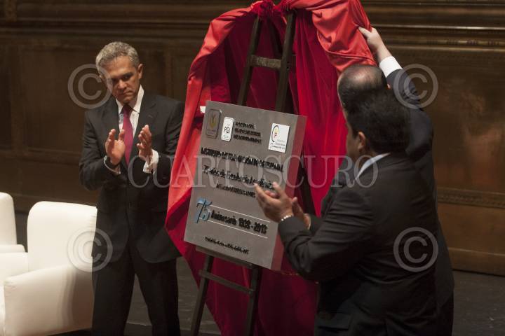 MÉXICO, D.F., 14ABRIL2013.-Durante la Celebración del 75 aniversario del Instituto de Formación Profesional de la Procuraduría General de Justicia del Distrito Federal (PGJDF), se suscribió un convenio con la Organización de los Estados Americanos (OEA) en temas de formación y profesionalización del personal sustantivo de la dependencia local. Al acto acudieron el procurador capitalino Rodolfo Ríos Garza, Dante Negro, director del Departamento de Derecho Internacional de la OEA, y Miguel Ángel Mancera, jefe de Gobierno del D.F. Posteriormente se ofreció un concierto por parte de la Orquesta Sinfónica Nacional. FOTO: JUAN PABLO ZAMORA /CUARTOSCURO.COM