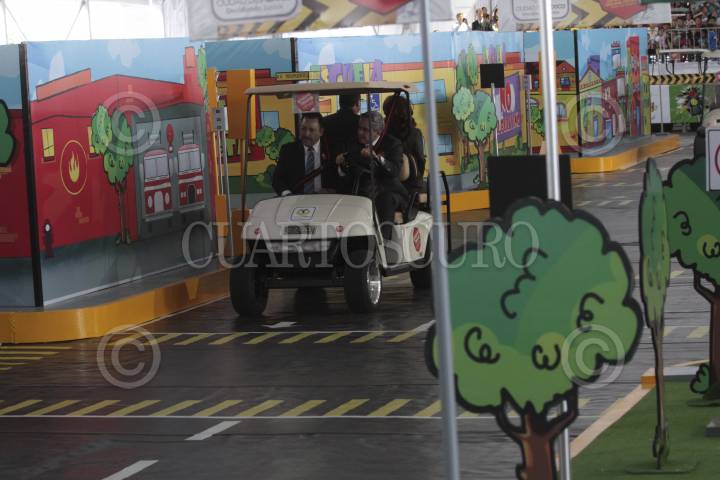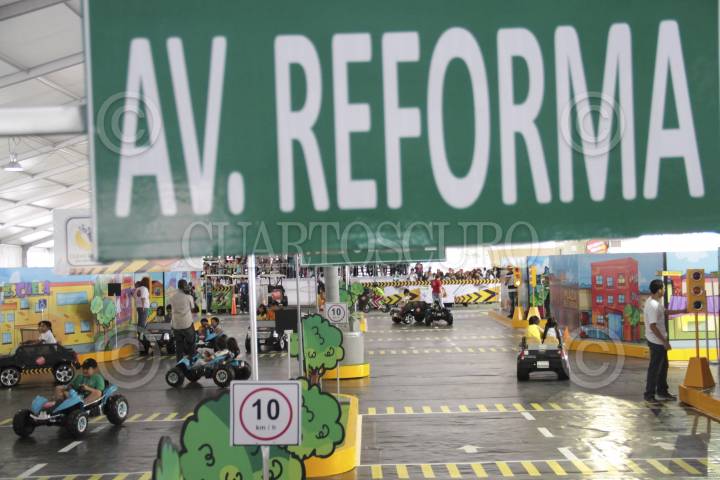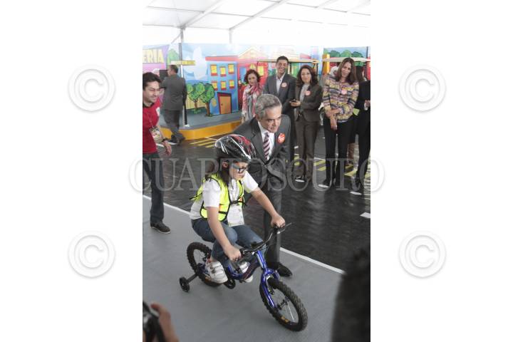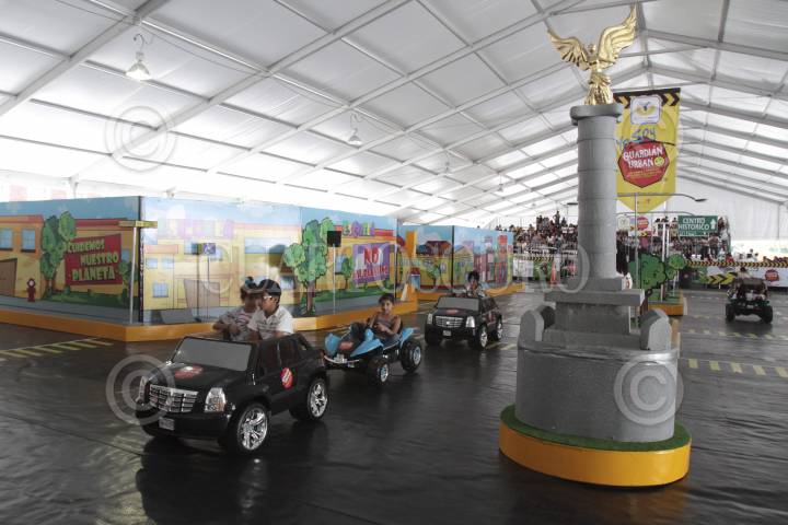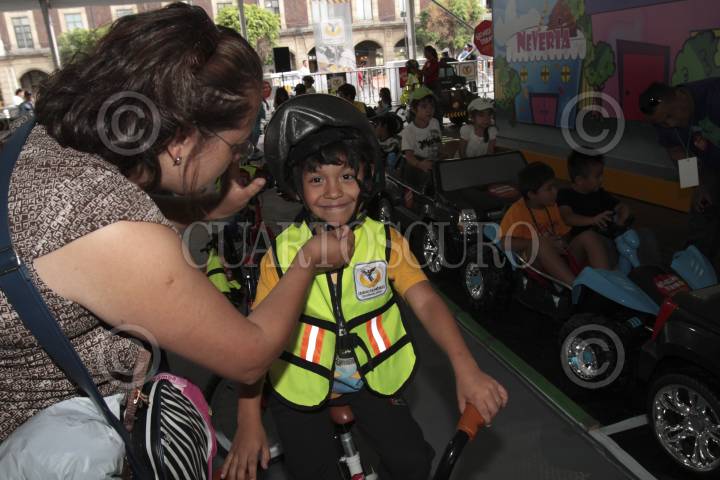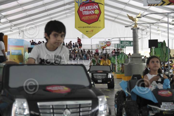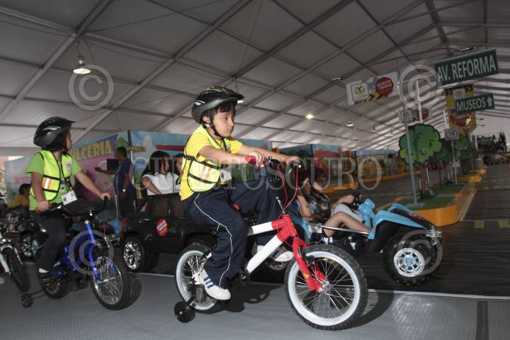 MÉXICO D.F., 24JULIO2013.- El jefe de gobierno del Distrito Federal, Miguel Ángel Mancera, inauguró "Guardián Urbano" en el Zócalo capitalino, una ciudad en miniatura para que niños de 5 a 9 años puedan practicar y aprender sobre cultura y civilidad vial. Según el jefe de Gobierno, la mini ciudad será visitada por mil 500 menores al día de 10 a 18 horas. Podrán circular de forma gratuita en bicicletas, triciclos y autos en miniatura por los circuitos viales que simulan Avenida Paseo de la Reforma, incluso con un Ángel de la Independencia. FOTO: JUAN PABLO ZAMORA /CUARTOSCURO.COM