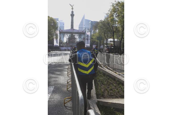 MÉXICO, D.F., 31DICIEMBRE2015.- El Gobierno del DF ha implementado un fuerte operativo en los alrededores del Ángel de la Independencia en donde se celebrará el concierto de fin de año, con la presencia de cientos de policías y de unidades de especiales antibombas, se encuentran a la expectativa de como se desarrollan los festejos. FOTO: MOISÉS PABLO /CUARTOSCURO.COM
