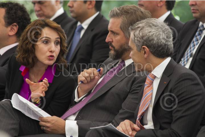 CIUDAD DE MÉXICO, 06SEPTIEMBRE2016.- Tanya Müller, secretario del Medio Ambiente; Michael Berkowitz, presidente de 100 Ciudades Resilientes (100RC), y Miguel Ángel Mancera, Jefe de Gobierno, durante el lanzamiento de la estrategia de resiliencia CDMX. Gracias a este acuerdo la capital trabajará con un fondo de seis mil millones de pesos sobre Resiliencia hídrica para crear el Fondo de Agua para la ciudad y desarrollar una cultura del consumo responsable y rescatar zonas acuíferas. La firma se realizó en el Cárcamo de Dolores en el Bosque de Chapultepec. FOTO: MOISÉS PABLO /CUARTOSCURO.COM