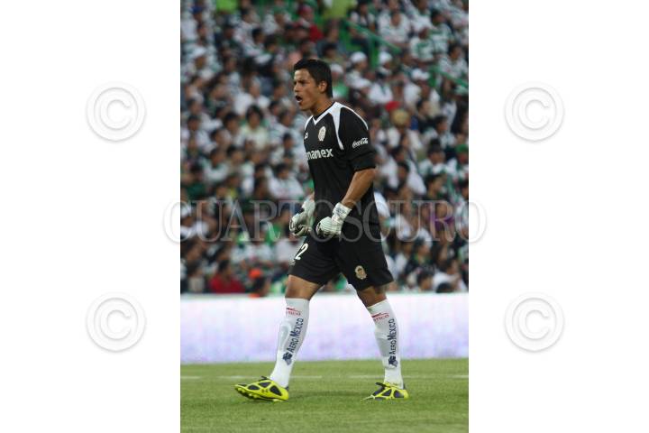 TORREON, COAHUILA, 20MAYO2010.- Alfredo Talvera, portero de los Diablos del Toluca festeja la anotacion de Diego Novaretti en contra de guerreros del Santos Laguna en el partido de ida de la final del torneo Bicentenario del fútbol mexicano que se realiza en el estadio Corona. El partido hasta este momento del primero tiempo va empatado a un gol. FOTO: RODOLFO ANGULO/CUARTOSCURO.COM