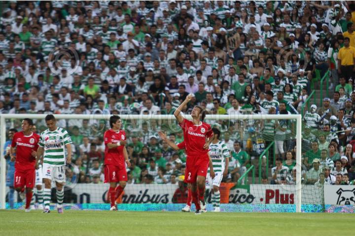 TORREON, COAHUILA, 20MAYO2010.- Diego Novaretti de los Diablos del Toluca festeja su anotacion de en contra de guerreros del Santos Laguna en el partido de ida de la final del torneo Bicentenario del fútbol mexicano que se realiza en el estadio Corona. El partido hasta este momento del primero tiempo va empatado a un gol. FOTO: RODOLFO ANGULO/CUARTOSCURO.COM