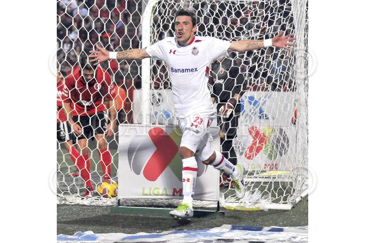 TIJUANA, BAJA CALIFORNIA, 30NOVIEMBRE2012.- Anoche los Xolos de Tijuana derrotaron 2-1 al Toluca en el partido de ida de la final de la Liga MX. Edgar Benitez celebra el único gol del Toluca. FOTO: RAMÓN BLANCO /SEMANARIO ZETA /CUARTOSCURO.COM