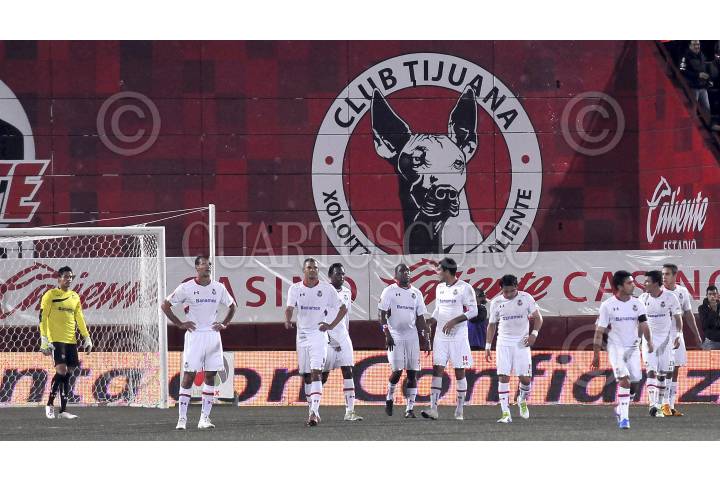 TIJUANA, BAJA CALIFORNIA, 30NOVIEMBRE2012.- Anoche los Xolos de Tijuana derrotaron 2-1 al Toluca en el partido de ida de la final de la Liga MX. Reacción del equipo Toluca después de recibir el segundo gol de Xolos. FOTO: RAMÓN BLANCO /SEMANARIO ZETA /CUARTOSCURO.COM