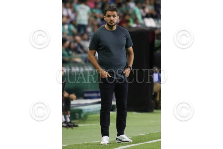 Nicolás Larcamón, director técnico de León, durante el partido contra Mazatlán en que obtuvieron la victoria.