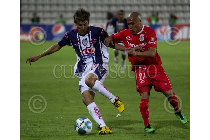PACHUCA, HIDALGO, 12MAYO2010.-Edgar Benitez de los tuzos del Pachuca pelea el balón en contra de los Diablos del Toluca durante el partido de ida de las semifinales del torneo Bicentenario del fútbol mexicano que se realizo en el estadio Huracán quedando empatado a 2 goles. FOTO: RODOLFO ANGULO/CUARTOSCURO.COM