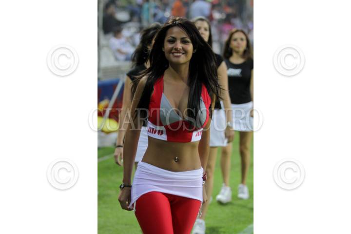 TORREON, COAHUILA, 20MAYO2010.- Bellas edecanes estuvieron presentes durante el encuentro entre los Guerreros del Santos Laguna y los Diablos de Toluca, partido de ida de la final del torneo Bicentenario del fútbol mexicano que se realizó en el estadio Corona, quedando empatado a dos goles. FOTO: RODOLFO ANGULO/CUARTOSCURO.COM