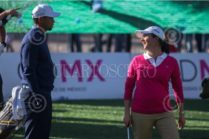 MÉXICO, D.F., 20OCTUBRE2015.- El golfista Tiger Woods junto a la exgolfista Lorena Ochoa participaron en la clínica de golf que organizó el gobierno de la ciudad en el Altar a la Patria. FOTO: ENRIQUE ORDÓÑEZ /CUARTOSCURO.COM