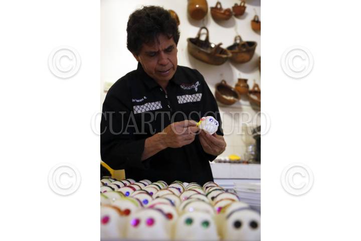 PUEBLA, PUEBLA; 27OCTUBRE2017.- Formando parte de la quinta generación de artesanos, Emilio Quintana Ramírez continúa ofreciendo talleres y elaborando tradicionales calaveritas de azúcar para adornar ofrendas y altares propios de temporada de muertos. FOTO: HILDA RÍOS/ CUARTOSCURO.COM