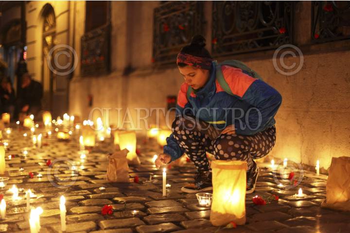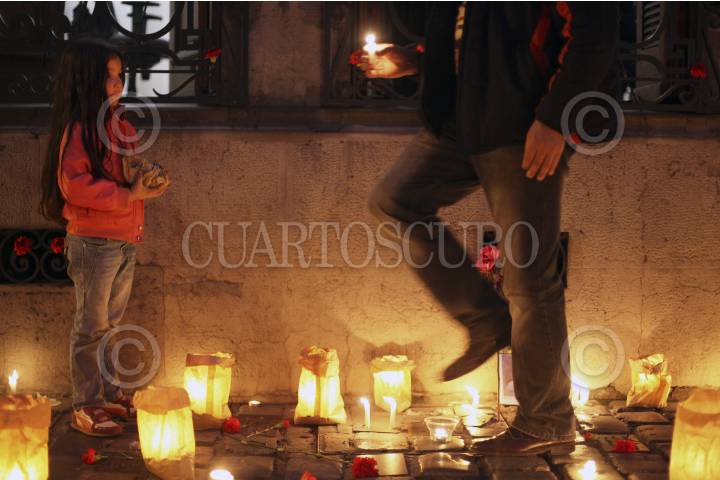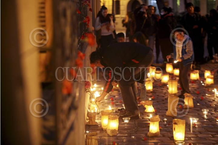SANTIAGO, CHILE, 11SEPTIEMBRE2015.- Chilenos participaron en una "velatón" a las afueras de diversos centros de detención y tortura, como parte la conmemoración de 42 años del golpe militar. FOTO: FÉLIX MÁRQUEZ /CUARTOSCURO.COM