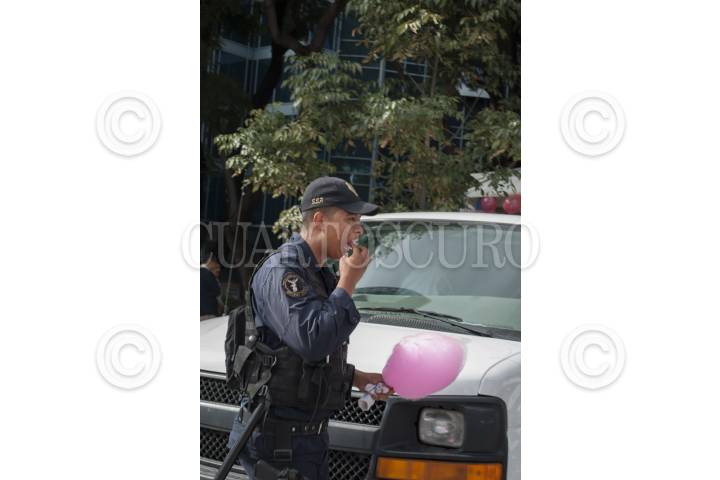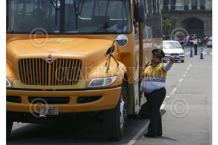 CIUDAD DE MÉXICO, 03AGOSTO2016.- Una oficial de transito auxilia a un conductor de un camiñon escolar en el circuito de la plancha de la constitución. FOTO: SAÚL LÓPEZ /CUARTOSCURO.COM