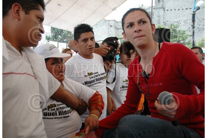 MÉXICO, D.F., 30MAYO2009.- Ana Gabriela Guevara, candidata perredista a jefa delegacional de Miguel Hidalgo, encabezó un evento proselitista en la explanada del mercado de la Tacuba, ahí la ex-corredora firmo playeras. FOTO: MOISÉS PABLO/CUARTOSCURO.COM