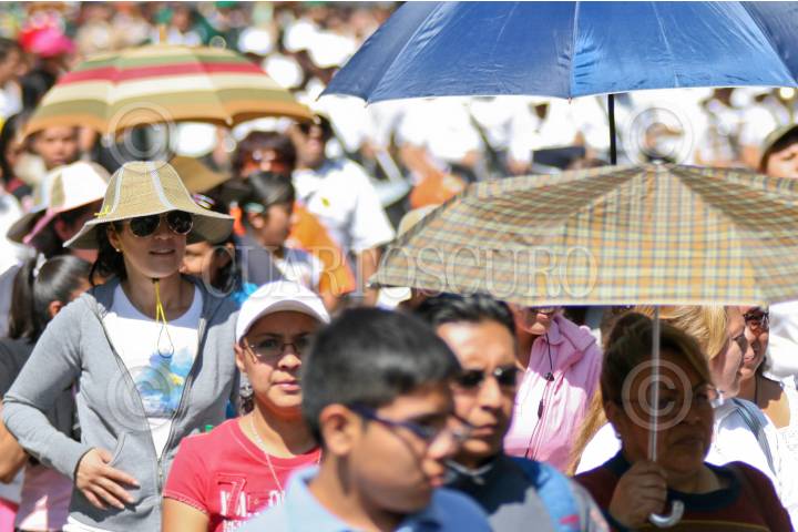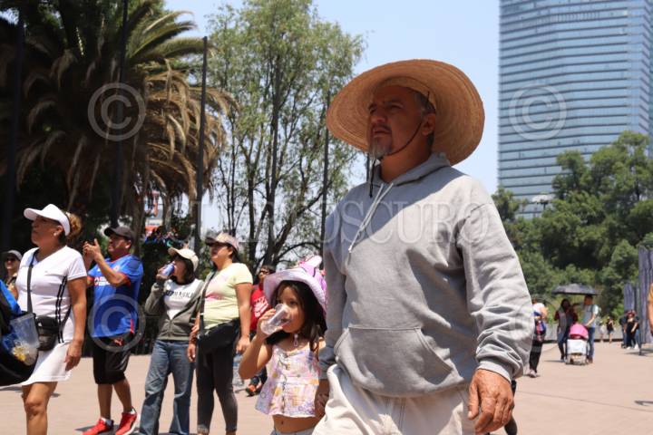 MÉXICO, D.F., 08MAYO2010.- Las altas temperaturas que se registran en la capital del país provoca que muchos de sus habitantes salgan con sombrillas o gorras para protegerse de los rayos del sol. FOTO: MARCO POLO GUZMÁN HERNÁNDEZ/CUARTOSCURO.COM