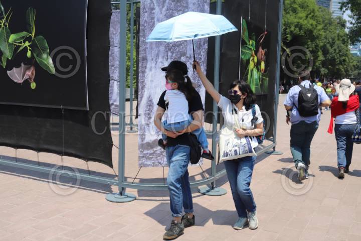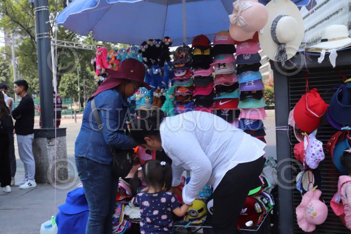 CIUDAD DE MÉXICO, 30MARZO2024. Continuan las altas temperaturas en la capital del país. Habitantes de la Ciudad de México se protegen con gorras y sombrillas del intenso calor. FOTO: EDGAR NEGRETE/CUARTOSCURO.COM