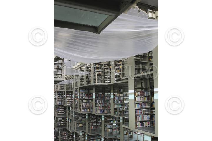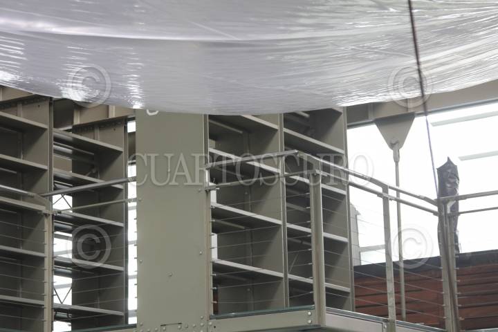 MÉXICO, D.F., 01OCTUBRE2012.- Trabajadores de la Biblioteca José Vasconcelos colocaron plásticos que cubren los muebles del último piso debido a las goteras que se registraron en el inmueble. FOTO: SAÚL LÓPEZ /CUARTOSCURO.COM