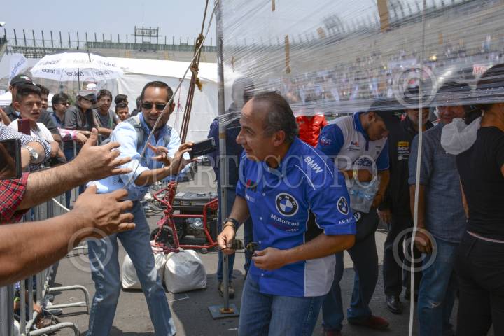 CIUDAD DE MÉXICO, 02JULIO2017.- El ex presidente Felipe Calderón Hinojosa, durante su participación en el Grand Prix Internacional Wing´s Army celebrado en el Autódromo Hermanos Rodriguez. El ex mandatario se llevó el primer lugar en la carrera de la categoría “celebridades”. FOTO: MARIO JASSO /CUARTOSCURO.COM